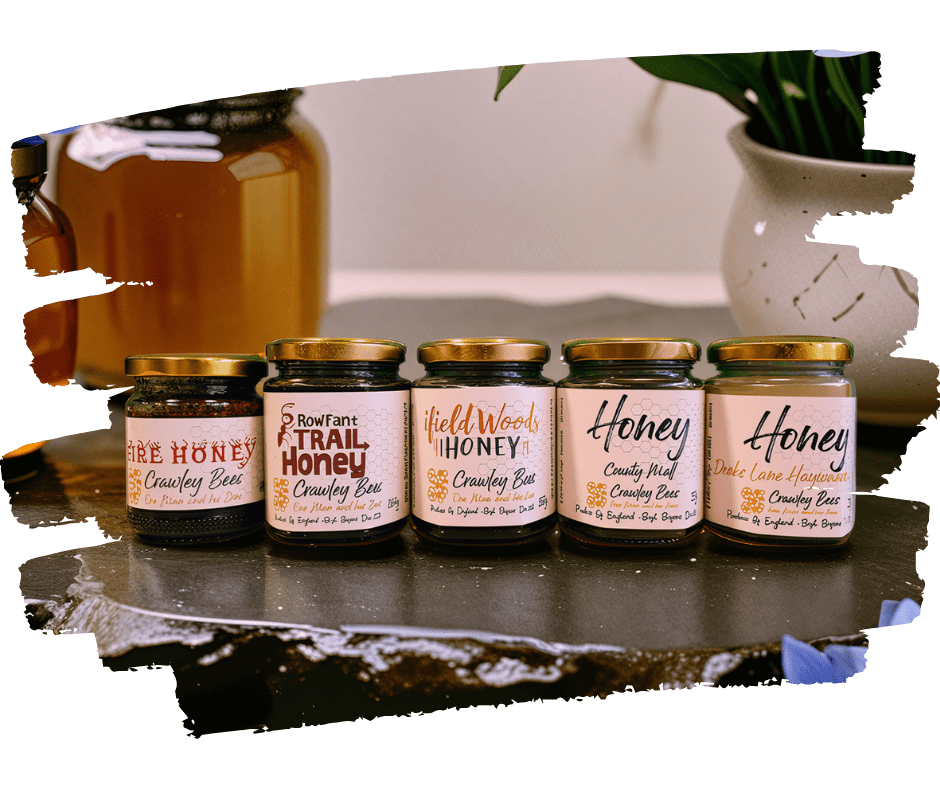 All honey comes from my own hives in Crawley and West Sussex, including Ifield Woods, County Mall, Rowfant Trail, and Deaks Lane.